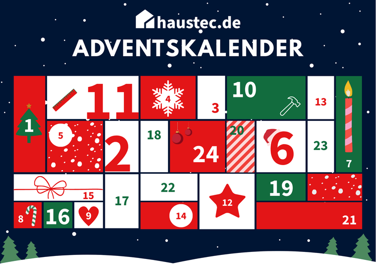 Spielen Sie jetzt mit und sichern Sie sich Ihre Chance auf einen unserer täglichen Gewinne. Sie müssen auf haustec.de eingeloggt sein, um beim Adventskalender Gewinnspiel mitmachen zu können.