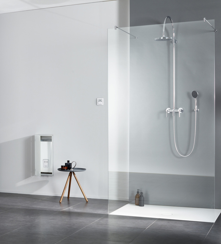 Der vollelektronisch geregelte Durchlauferhitzer verfügt über WLAN und Bluetooth-Funktionen und wird im Set mit einer Fernbedienung geliefert. Am E-Paper-Display der Fernbedienung können nicht nur Temperaturen eingestellt, sondern auch individuelle Temperaturprofile angelegt und die Verbrauchswerte angezeigt werden. Zwischen 35 und 43 Grad kann man die Temperatur sogar bis auf ein halbes Grad genau einstellen. Die Bedienung des Durchlauferhitzers funktioniert auch mit der App Smart Control per Tablet oder Smartphone oder sogar per Sprachsteuerung. Twin Temperature Control TTC und die dynamische Durchflussmengenregelung Servotronic sorgen dafür, dass die eingestellte Wunschtemperatur auch bei Schwankungen des Wasserdrucks immer konstant gehalten wird