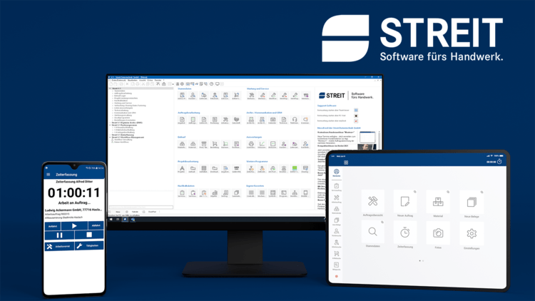 Die Handwerkersoftware Streit V.1 ist in Kombination mit dem verfügbaren App-Paket für iOS und Android das ideale Digitalisierungstool für Handwerker, die ihren Betrieb zukunftsfähig, zeitsparend, papierlos und effizient verwalten wollen.