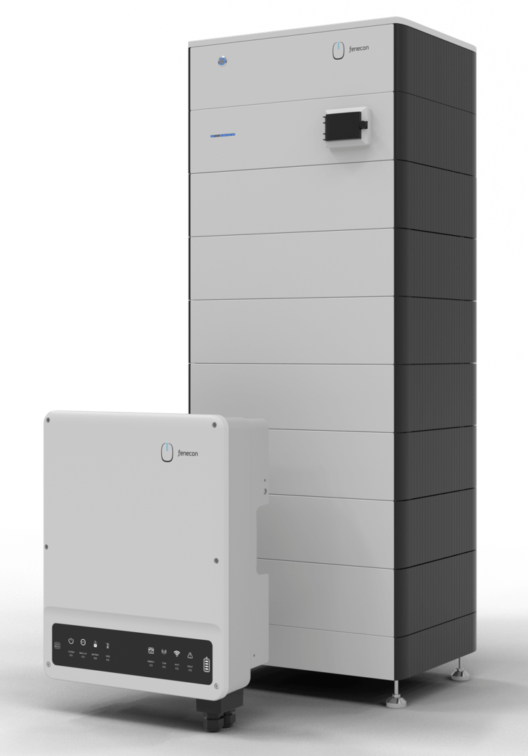 Fenecon liefert mit dem Heimspeicher Home ein Hochvoltsystem mit einer Kapazität von 8,8 bis 66 kWh, welches nachträglich erweitert werden kann. Die Leistung der lüfterlosen, und damit leisen Wechselrichter beträgt derzeit 10 kW. Home soll aber bald auch mit 20 und 29,9 kW angeboten werden. Während DC-seitig bis zu 15 kWp PV direkt angeschlossen werden können, auch hier sollen laut Fenecon bald 30 oder 45 kWp möglich sein, kann AC-seitig zusätzliche Leistung beliebig eingebunden werden. Auch das Thema Sicherheit wurde bedacht: Der Heimspeicher ist schieflastfähig sowie 3-phasig notstromfähig mit solarer Nachladung. Bei Einbindung von dynamischen zeitvariablen Stromtarifen wird der Reststrombezug auf günstigere Zeiträume gelegt. Dabei ist der Betreiber frei in der Wahl seines Stromanbieters.