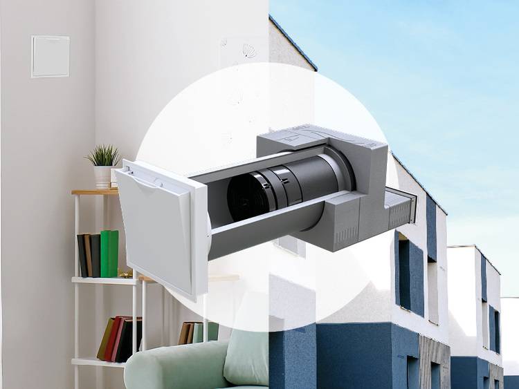 Die dazugehörige Funk-Innenblende Connect verbirgt den dezentralen Lüfter: In der Unterputzvariante ist die Innenblende im geschlossenen Zustand wandbündig und kann überstrichen oder übertapeziert werden. Einmal ans Stromnetz angeschlossen, lässt sich die Innenblende in das Funknetzwerk von InVENTer-Connect einbinden. Damit entfällt die Verkabelung der Lüftungsgeräte im gesamten Haus.