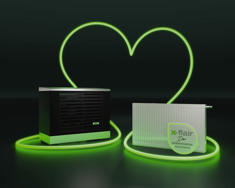 Der Wärmepumpenheizkörper x-flair ist auf den Betrieb mit modernen Wärmeerzeugern im Niedertemperaturbereich ausgelegt. Im Vergleich zum statischen Warmwassermodell sind somit kleinere Baugrößen bei gleicher Wärmeleistung möglich – ein Platzvorteil bei der Raumplanung. Durch die kurze Aufheizzeit und das schnelle Abkühlen eignet sich x-flair ideal für den Einsatz in temporär genutzten Räumen mit kurzfristigem, auch wechselndem Wärmebedarf wie Büro oder Kinderzimmer.
