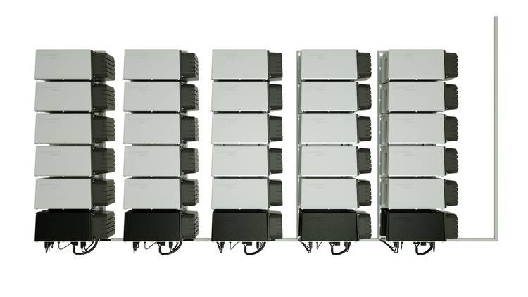 Um die Matrix aufzubauen, wird lediglich ein gestanztes Formblech an die Wand gedübelt. Dort werden die Komponenten eingehängt, per Stecker verkabelt und fertig. „Wir haben bei der Montagetechnik mit vielen Installateuren gesprochen“, bestätigt Olaf Wollersheim, Geschäftsführer von Solarwatt Innovation in Frechen. „Ihre Erfahrungen flossen in das neue Konzept ein. Die Installation dauert nur noch wenige Minuten.“ Mit dem neuen My Reserve Matrix kann Solarwatt kleine und sehr große Speicher bauen. Die Speichersysteme können sehr leicht erweitert und an einen veränderten Strombedarf angepasst werden. Auch lassen sie sich sehr schnell installieren.