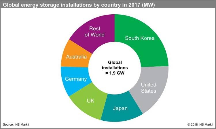 Am Stromnetz neu installierte Strompuffer erreichten 1,9 Gigawatt im vergangenen Jahr. „Das Wachstum lag bei 53 Prozent“, sagt Julian Jansen, der bei IHS für Speicher zuständig ist. Der größte Markt sei nun Südkorea vor den USA. Auch Japan und Australien legten bei den Wachstumsraten stark zu. Es gebe allerdings Unsicherheiten und Beschränkungen im Markt. Der Analyst hält einen Preisanstieg für Lithium-Ionen-Zellen in diesem Jahr für durchaus möglich.