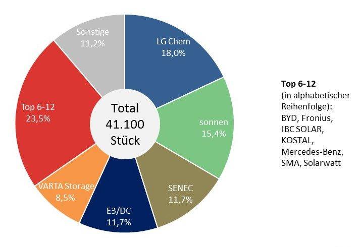 „So haben Player wie LG Chem oder Varta Storage sehr schnell Marktanteile gewonnen.“ Die fünf Hersteller LG Chem, Sonnen und Senec sowie E3/DC und Varta Storage vereinen hierzulande 65% des gesamten Absatzes von Heimspeichersystemen auf sich. Bei Batteriewechselrichtern ist SMA der Platzhirsch, der zudem ein eigenes Komplettsystem anbietet.