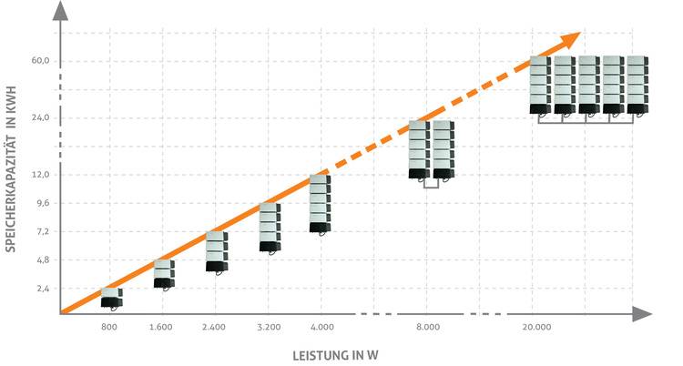 Der Dresdner Speicheranbieter Solarwatt wird in Zukunft auch Geräte für Gewerbe- und kleinere Industrieunternehmen ins Portfolio aufnehmen. Bisher war der Hersteller vor allem im privaten Heimspeichersegment unterwegs. Die Dresdner haben aber jetzt eine Lösung entwickelt, einzelne Heimspeicher zu einem größeren Speicher zusammenzuschließen. Damit steigt die nutzbare Kapazität von derzeit maximal zwölf auf 60kWh. Denn bis zu fünf der bisher größten, von Solarwatt angebotenen Speicher mit jeweils einer Steuereinheit und fünf Batteriemodulen, können jetzt zusammengefasst werden. Damit steigt auch die Ausgangsleistung von momentan vier auf dann 20kW. „Unsere Partner haben nun die Möglichkeit, völlig neue Kundengruppen im Gewerbebereich zu erschließen“, sagt Detlef Neuhaus, Geschäftsführer von Solarwatt, mit Blick auf den Vertrieb der Installateure.