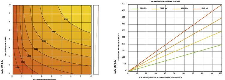 Der Netzbezug der Speichersysteme steigt mit zunehmender Stillstandszeit und AC-Leistungsaufnahme. Bei Systemen mit einer AC-Leistungsaufnahme von 50 Watt und mehr können schnell mehrere Hundert Kilowattstunden pro Jahr zusammenkommen, die vom Netz in den Heimspeicher fließen. Die sich daraus ergebenden Verluste muss man in Relation zur jährlichen AC-Energieabgabe des Batteriesystems betrachten: Je nach Systemdimensionierung können dadurch immerhin zehn bis 20 Prozent des durch den Batteriespeicher vermiedenen Netzbezugs aufgrund des Stand-by-Verbrauchs wieder verloren gehen.