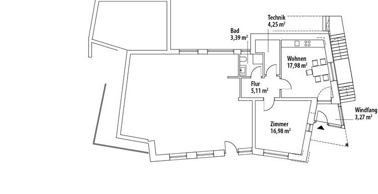 Die Hanglage des Gebäudes erlaubte die Integration einer Einliegerwohnung im Kellergeschoss, die als Zweitwohnung für den Eigentümer konzipiert ist, aber im Fall des Falles auch von den Mietern der Hauptwohnung genutzt werden könnte. Damit der zeitweilig hier wohnende Pensionär keine kalten Füße kriegt, wurde auf die alte Bodenplatte eine 16 Zentimeter dicke Dämmung gepackt. Zwar gab die Raumhöhe diese Entscheidung her, allerdings mussten Türen und Fensterstürze höher gesetzt werden.