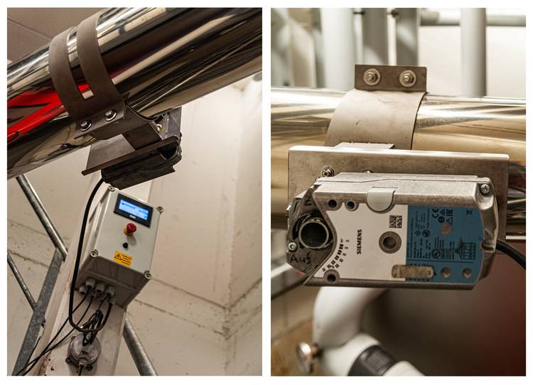 Abgasklappe, Stellantrieb und Druckdose kommunizieren über eine zentrale Steuereinheit. Die Abgasklappe wird per Nachrüstsatz direkt in die vorhandene Verbindungsleitung installiert und per Stellantrieb motorisch betrieben.