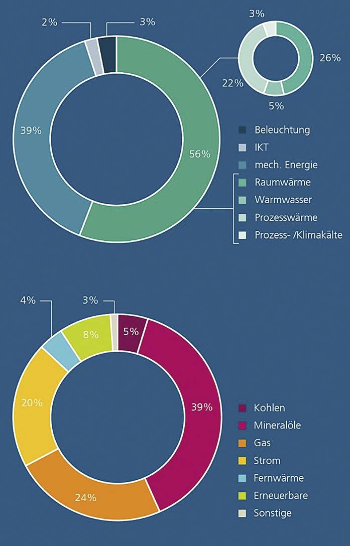 Nur ein kleiner Teil der Wärmegewinnung erfolgt bisher durch regenerative Quellen, dagegen spielen beim Heizen von Wohnungen, Büros und Gewerbe sowie beim Prozesswärmebedarf in der Industrie nach wie vor Öl, Gas und Kohle die größte Rolle, siehe Bild 1 (aus: Bracke et al. 2022). Um die Pariser Klimaschutzziele zu erreichen, strebt die aktuelle Regierungskoalition daher an, zumindest die Hälfte der kommunalen Wärme bis 2030 aus klimaneutralen Quellen mit erneuerbaren Energien zu generieren (vgl. Koalitionsvertrag 2021–2025).