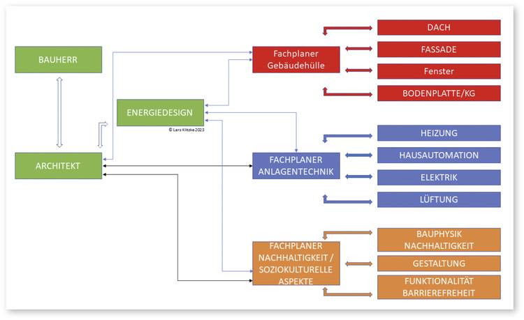 Wenn wir jetzt zu Energiemaschinen beraten, müssen wir uns die Frage der zukünftigen Energieversorgung stellen: Geht es bei stetig steigender Energieeffizienz bei den Gebäudehüllen noch um die Erzeugung von Raumwärme und Trinkwarmwassererzeugung oder stärker um die Stromerzeugung für Haushalt und Mobilität? Benötigen wir bei stetig steigenden Temperaturen nicht eher Kältemaschinen? Liegt die Antwort in Wärme-Kälte-Kraft-Verbundsystemen und wenn ja, welche Systeme sind das? Liegt die Antwort des derzeitigen Energiedilemmas aus Energie (Gas-) Versorgungsleistung aus fossilen Energien in der effizienten Erzeugung der Kilowattstunde oder in deren Vermeidung? Hier fängt Energiedesign an.