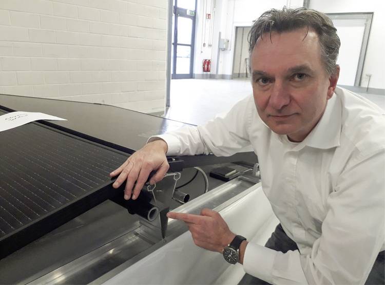 Im Wärmetauscher zirkulieren nur 0,7 Liter Sole, der Druckverlust im PVT-Modul beträgt nur 30 Millibar. „Diese Bleche wurden ursprünglich zur Kühlung der Batterien von E-Autos verwendet“, erläutert Wilhelm Stein, CEO von Sunmaxx. „Wir haben die Technik für Solarmodule adaptiert. Das ist erprobte Massentechnik aus Aluminium, die sehr geringe Kosten erlaubt.“