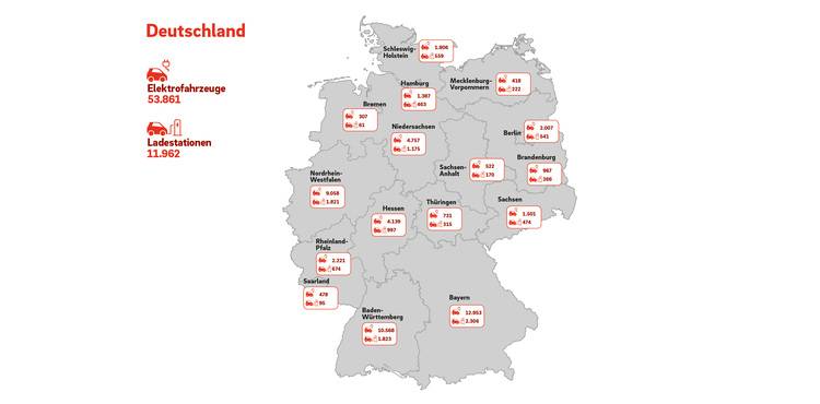 Für die Auswertung hat E.ON die aktuelle Zahl der Ladestationen in Deutschland ermittelt (Stand Ende Juni 2018) und diese dann ins Verhältnis zu den zugelassenen reinen Elektroautos gesetzt hat; Quelle Zulassungszahlen: Bestand an Kraftfahrzeugen und Kraftfahrzeuganhängern nach Zulassungsbezirken zum 1.1.2018; Kraftfahrbundesamt