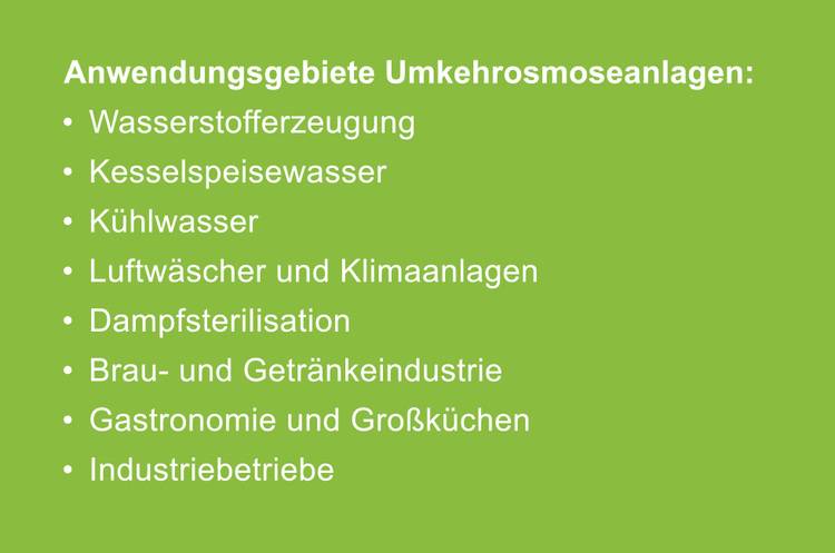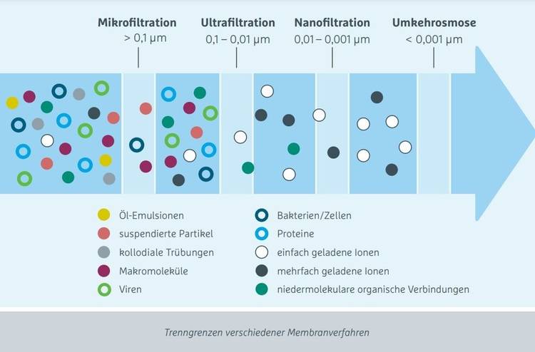 Die Umkehrosmose ist eine der wichtigsten und umweltfreundlichsten Technologien in der Wasseraufbereitung. Sie ist, wie der Name bereits sagt, die Umkehrung der aus der Natur bekannten Osmose. Bei der Wasseraufbereitung mittels Umkehrosmose wird das Rohwasser mit hohem Druck durch eine halbdurchlässige Membran gepresst. Sie lässt fast nur Wassermoleküle passieren. Nach dem Durchströmen der Membran wird das Wasser als Permeat bezeichnet und ist nahezu frei von Kalk, Schwermetallen, Bakterien, Keimen, Partikeln sowie gelösten organischen Substanzen und sonstigen Verunreinigungen. Im Permeat findet sich lediglich ein Restsalzgehalt von 1 bis 5 Prozent. Auf der anderen Seite der Membran bleibt das sogenannte Konzentrat zurück.