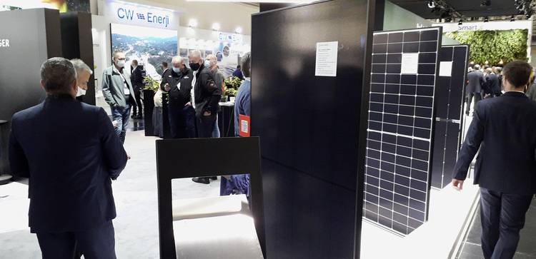 Der Star war unbestritten Meyer Burger mit den neuen Heterojunction-Modulen aus der Modulschmiede im sächsischen Freiberg. Der Messestand wurde von Beginn der Veranstaltung an von Interessenten regelrecht belagert. Denn steigende Modulpreise, steigende Transportkosten und Zweifel an der Verfügbarkeit von Ware aus Asien spielen den Anbietern aus Europa in die Hände.