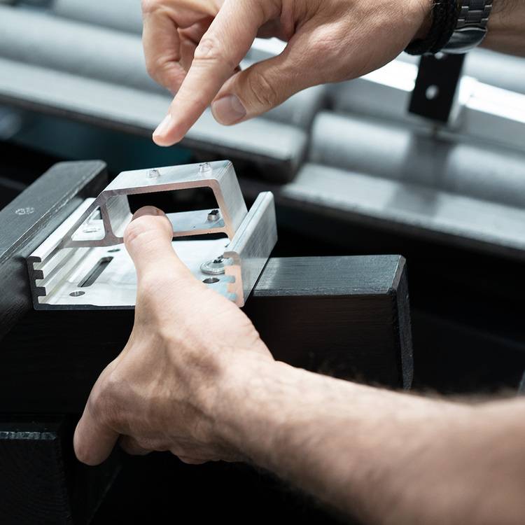 Grundplatte und Schlitten der CompactPitch XM-F Lösung, hiermit kann der Dachhaken mittig auf dem Sparren montiert werden.