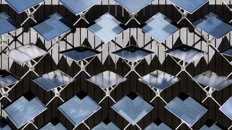 Eine Forschergruppe um Arno Schlüter, Professor für Architektur und Gebäudesysteme an der ETH Zürich, hat ein neuartiges Solarfassadensystem entwickelt. Das besteht aus einem leichten Seilnetz, an dem in Reihen angeordnet Photovoltaikelemente befestigt sind. Diese werden einzeln angesteuert und von einem weichen pneumatischen Element – einem Aktuator – vertikal und horizontal bewegt. Auf diese Weise können sie sich perfekt nach konkreten Vorgaben ausrichten.