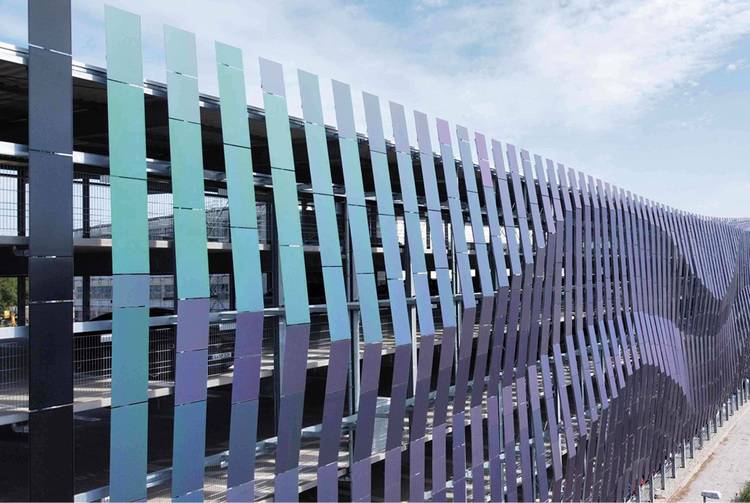 Photovoltaikfassaden müssen nicht zwingend flach sein. Wie eine dreidimensionale Solarfassade aussehen kann, hat Avancis am neuen DHL-Parkhaus in Leipzig gezeigt. Direkt südlich angrenzend an den Leipziger Flughafen hat die DHL-Gruppe einen neuen Bürokomplex errichtet.