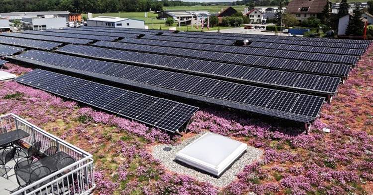 Die Pflanzen kühlen nicht nur die Anlage von unten, sondern die Dachbegrünung verlängert auch die Lebensdauer der Dachabdichtung, verspricht Contec, indem sie diese vor extremen Temperaturen schützt. Die Pflanzen werden so ausgewählt, dass sie eine Wuchshöhe von 30 Zentimeter nicht überschreiten und damit die Anlage nicht verschatten. Zudem werden Pflanzenarten angebaut, die auf der roten Liste stehen und gefährdet sind. Sie bieten einen Lebensraum für eine Vielzahl von Kleintieren und stellen so die Artenvielfalt sicher.