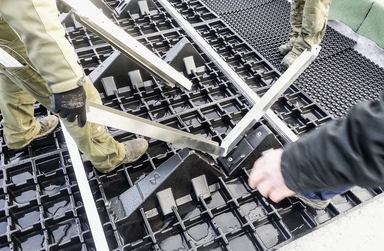 Bei einem Solargründach sollten alle beteiligten Gewerke – Dachdecker, Garten- und Landschaftsbau, Solarteur – bereits in der Planungsphase mitreden, um die Bauabläufe abzustimmen. Der Garten- und Landschaftsbauer kann die Verlegung des kompletten Photovoltaik-Gründachs durchführen, das heißt Solaraufständerung und Gründachaufbau. Bevor die Vegetation aufgebracht wird, montiert der Solarteur die Module und führt die Elektroarbeiten aus. Die Vegetationsarbeiten werden zum Abschluss durchgeführt, damit die Pflanzen keinen Schaden nehmen.