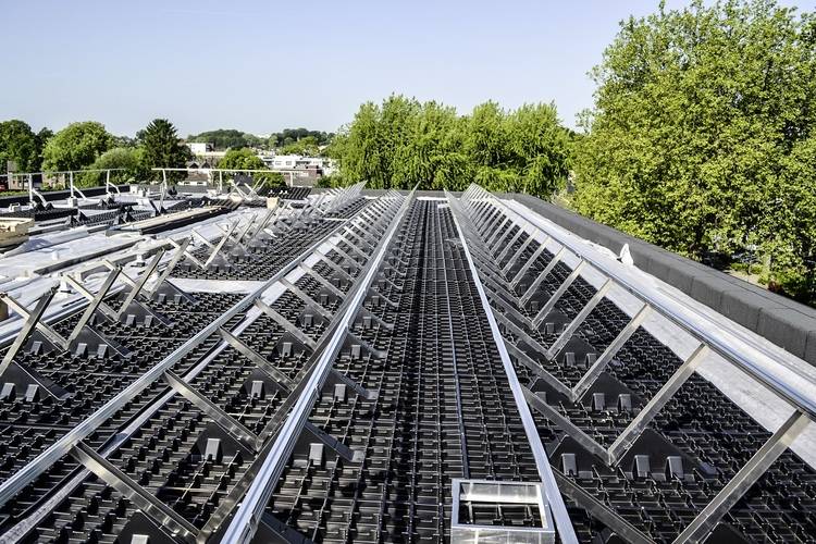 Ein Vorteil dieser Systemlösung ist, dass die Modulträger nicht in die Konstruktion und Abdichtung des Daches eingreifen. Zudem erzeugen sie in der Dachstatik keine schweren Punktlasten. Da die Abdichtung nicht durchbrochen wird, sinkt das Risiko für Leckagen. Das Solargründach erlaubt enge Modulreihen und damit hohe Erträge auf kleiner Fläche. Da die Vegetation unterhalb der Module verläuft, lassen sich trotzdem große Anteile der Dachflächen begrünen - egal, ob es sich dabei um ein Flachdach oder ein Schrägdach handelt.