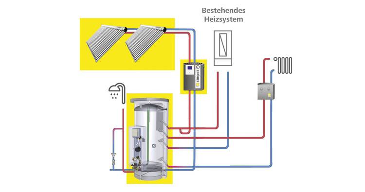 Nutzen: In den Übergangszeiten wird die Warmwasserbereitung über die Solaranlage garantiert, der Heizkessel muss nicht anspringen. Zudem können Speicher mit einem Wärmetauscher als Solarspeicher genutzt werden.