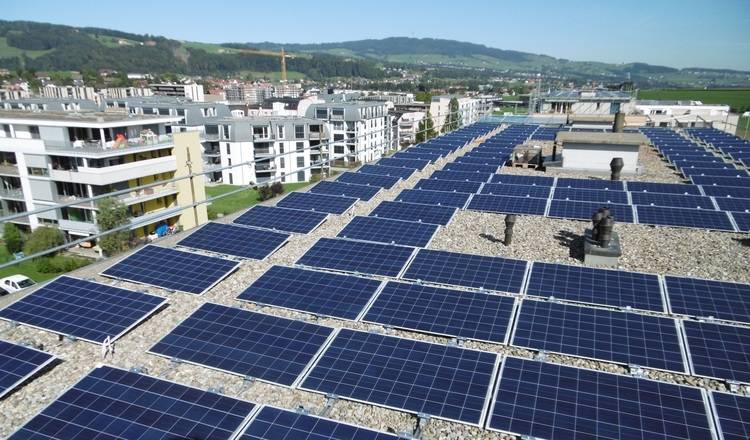 Der Eigentümer von fünf Mehrfamilienhäusern in Bulle im eidgenössischen Kanton Freiburg wollte stabile Solaranlagen, bei denen Schnee und Schmutz möglichst nicht auf den Modulen oder an den Rändern haften. Er entschied sich daher für rahmenlose Paneele von Megasol. Insgesamt 589 dieser Module haben die Monteure von Helion Solar auf die Dächer der fünf Häuser in Bulle gebracht.