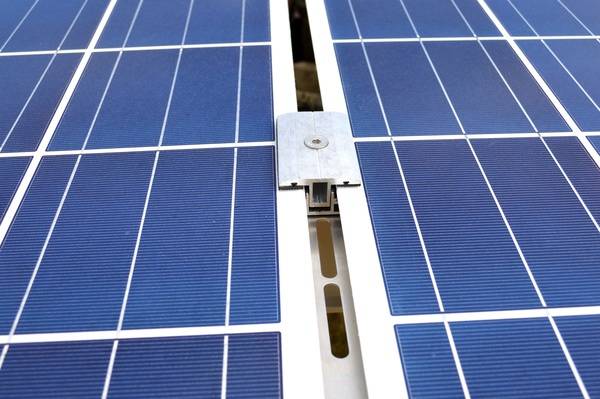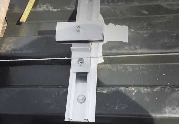 Bevor die Installation der Anlage beginnen konnte, musste eine ebene Fläche geschaffen werden, auf der das Gestellsystem stehen kann. Das ist wichtig, da die Laminate absolut spannungsfrei befestigt werden müssen. Wird ein Modul auf ein unebenes Dach geschraubt, kann es aufgrund von mechanischen Spannungen zerstört werden. Hier schafft auch der Gummi, mit dem die Laminatklemmen versehen sind, keine Abhilfe. Dieser dient eigentlich nur dazu, die Module zu fixieren und vor allem sie vor Kratzern zu schützen. Zudem müssen auch die Ränder der Module vor einem Kontakt mit dem Aluminium der Klemmen geschützt werden. Die Schutzschicht, in er Regel ein EPDM-Gummi, seltener wird hier TPE verwendet, muss sich um den gesamten Kantenbereich des Moduls herumlegen. Deshalb bestehen die Klemmen aus zwei L-förmigen Teilen, deren Innenseiten komplett mit dem Gummi beschichtet sind. „So vermeidet man auf allen Seiten, dass das Glas mit dem Aluminium der Klemme in Kontakt kommt“, erklärt Juliane Hinz, Vertriebsleiterin Großhandel bei Mounting Systems im brandenburgischen Rangsdorf.