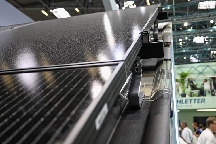 Zusätzlich zeigt Mounting Systems noch eine neue Klemme für die Montage auf Stehfalzdächern. Sie wurde im Vergleich zur bisherigen Lösung für höhere Lasten optimiert. Mit Blick auf hohe Wind- und Schneelasten hat das Unternehmen auch eine Lösung für das weiterentwickelte Flachdachsystem Light entwickelt. Dieses bekommt eine zusätzliche Stütze, die das Durchbiegen der Module in solchen Fällen verhindert.