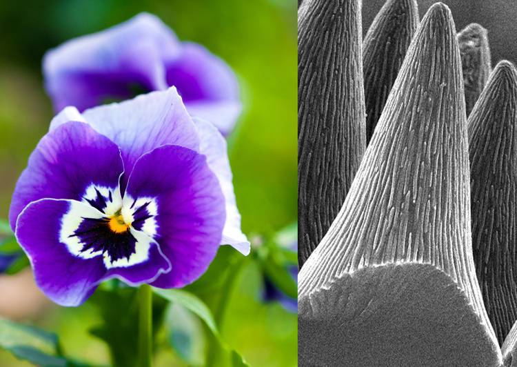 Erst Schmetterlinge, nun Blüten: Eine Forschungsgruppe am Karlsruher Institut für Technologie (KIT) fand Mikrostrukturen auf der Blüte des Stiefmütterchens (Viola wittrockiana), die Reflexionsverluste drastisch reduzieren. In der Natur führt dieser Effekt zu einem gesättigten Farbeindruck, mit dem die Blüten Bestäuber anlocken. Das Team um Ulrich W. Paetzold vom KIT konnte nun zeigen, dass mit dem gleichen Effekt die Leistung von Silizium-Solarzellen um 6% relativ gesteigert werden kann. Ihre Ergebnisse veröffentlichten sie nun in der Fachzeitschrift „ACS Photonics“.