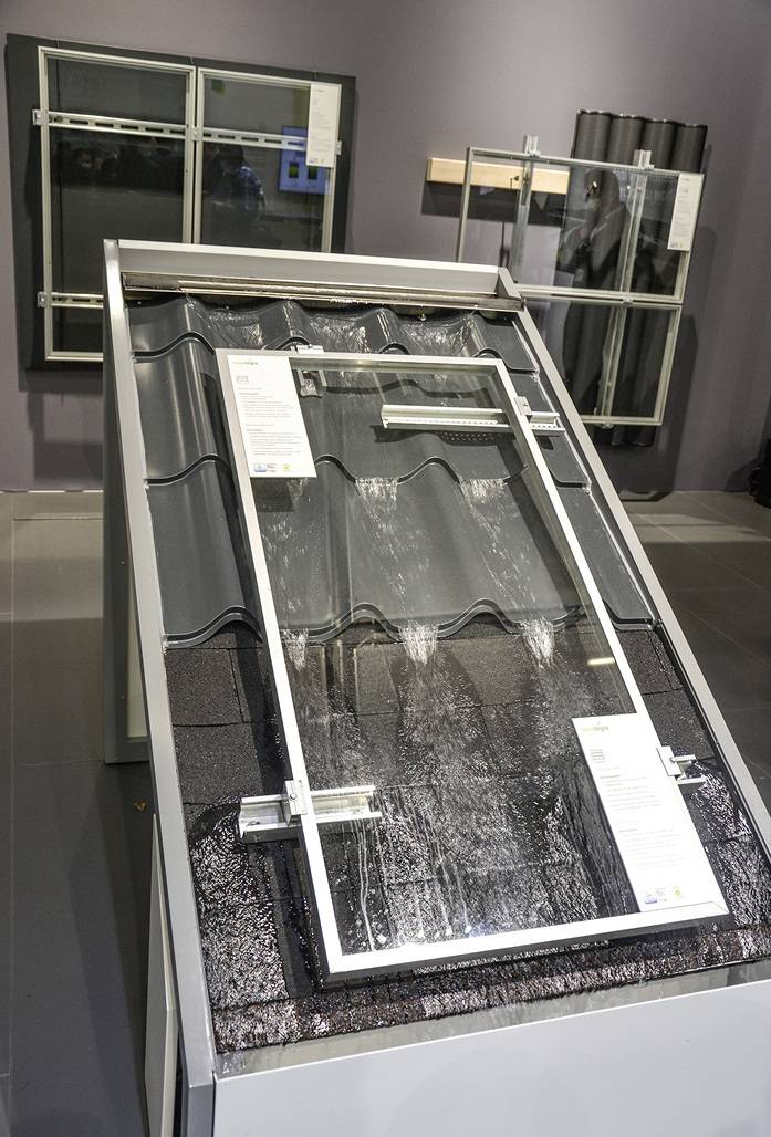 Auf diese Weise ist sichergestellt, dass das Wasser um das Kurzprofil herum abläuft. So ist es praktisch ausgeschlossen, dass Wasser in das U-Profil gelangt. Dennoch sorgt eine zusätzliche EPDM-Dichtung unter dem Kopf der Schraube, mit der das Profil am Dach befestigt ist, dafür, dass auch ganz sicher kein Wasser den Weg durch die Bohrung in die Dacheindeckung findet.