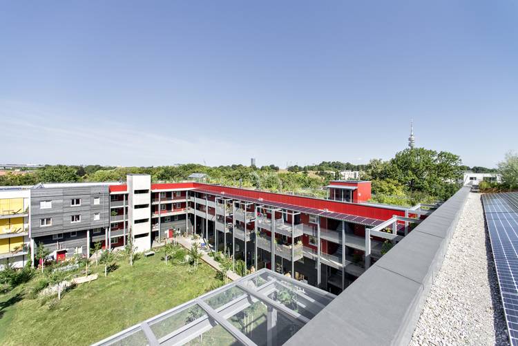 Mehrere gelungene Beispiele für ein sinnvolles Nebeneinander hat die Wohnungsgenossenschaft Wagnis realisiert. Sowohl beim Projekt Wagnis 4 als auch beim Projekt Wagnis Art wurde ein Teil der Dachflächen begrünt und ein Teil der Fläche für Photovoltaik ohne Dachbegrünung genutzt. Beides geschah im engen Austausch mit den Stadtplanern, und alle Nutzungsbegehren konnten erfolgreich unter einen Hut gebracht werden.