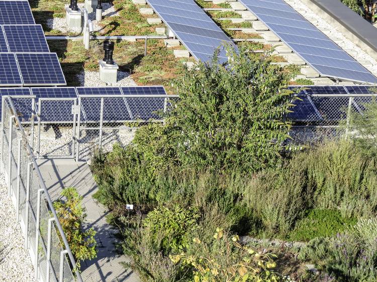 Regenwasserrückhaltung und Dachbegrünung ergänzen sich sehr gut. Beides ist relativ leicht unter einen Hut zu bringen. Wie aber sieht es mit der Energiegewinnung aus? Photovoltaikanlagen auf einer begrünten Dachfläche zu installieren erfordert Mehraufwand.