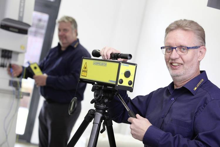 Im Ergebnis entstand ein selbst gebauter Sensor mit Teleskopstange, der die Fehlersuche stark vereinfachte. „In den Folgejahren haben wir nach immer neuen Lösungen gesucht, um Anlagen möglichst effektiv zu inspizieren und zu warten“, erläutert Klaus Terlinden. „Ab 2009 haben wir aus der praktischen Erfahrung heraus unsere Technik weiterentwickelt. 2015 ging die erste Kleinserie unseres PV-Fehlerortungs-Sets LSI in den Verkauf. Seitdem haben wir bundesweit bereits über 40 Lasersysteme in Betrieb.“