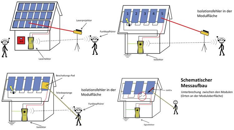 Wenn nicht, liegt ein Fehler vor. Somit kann man defekte Module sehr schnell orten. Das spart erhebliche Kosten bei der Demontage der defekten Module oder Steckverbinder – zu wissen, wo der Fehler steckt.