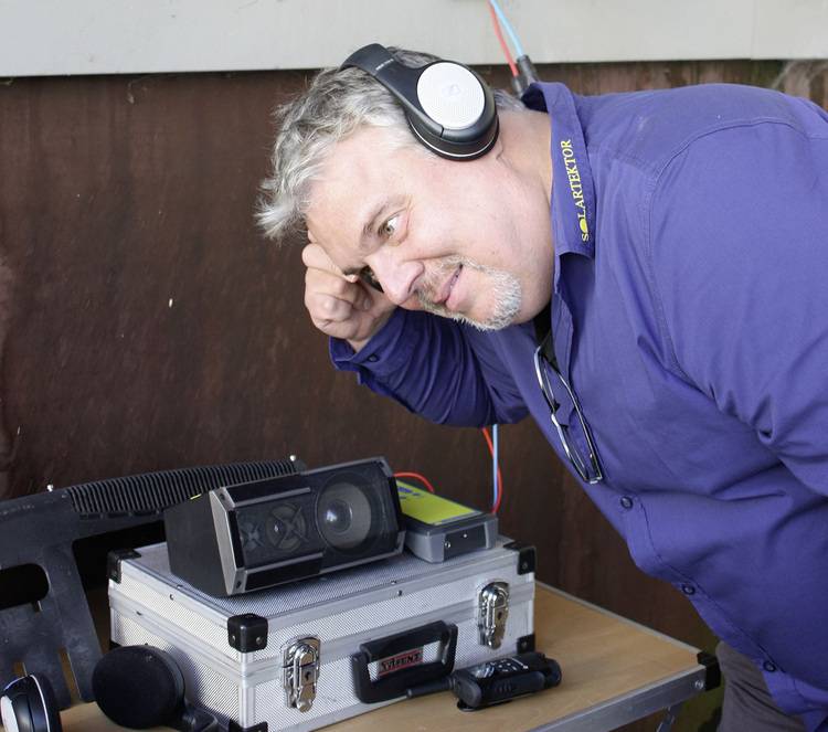 Dadurch haben die Solarteure die Hände frei, um die Ergebnisse der Messung aufzunehmen. Die Kopfhörer sind per Funk über 860 Megahertz verbunden, erlauben also einige Hundert Meter Reichweite. Oder sie werden über Walkie-Talkies gekoppelt, die bis acht Kilometer reichen.
