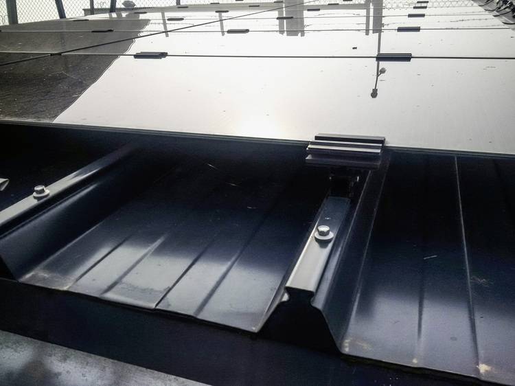 Mit einer Blechstärke von 0,75 Millimetern ist es zudem statisch so ausgelegt, dass es einen Solargenerator ohne Weiteres tragen kann. Das System hat einen weiteren Vorteil. Wenn die Anlage zurückgebaut wird, liegt kein durchlöchertes Trapezblech auf dem Dach. Die Dachhaut bleibt unversehrt.