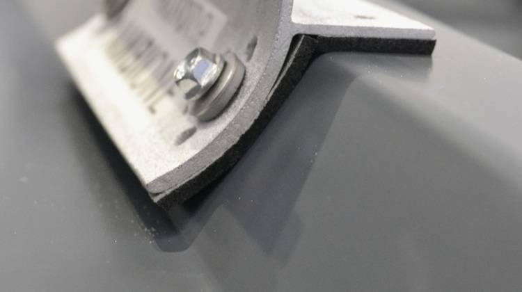 Die fünf Bohrungen reichen aufgrund ihrer Anordnung aus, um alle Sickengeometrien auch ohne Gelenk abzudecken. Einziger begrenzender Faktor, wie bei allen Systemen mit seitlicher Anbindung, ist, dass die Sicken hoch genug sein müssen, damit das Ambione nicht an die Tiefsicke stößt. Dann würde das System instabil. Mögliche Toleranzen, weil eine Schraube vielleicht doch nicht so perfekt sitzt, werden dabei durch eine vier Millimeter dicke, geschäumte EPDM-Dichtung ausgeglichen, die sich auf der gesamten Unterseite des Ambione befindet.
