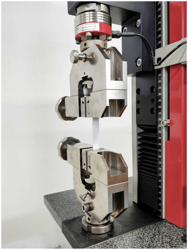 Im Labor werden die Folien einem Bruchdehnungstest (s. Abb. 1) unterzogen, um ihre Elastizität zu prüfen. „Sinkt die Elastizität unter einen Grenzwert von etwa 30 Prozent, sind die Folien versprödet und können reißen“, weiß Peter Lechner. „Polyamidfolien zeigen sehr oft zu niedrige Bruchdehnungswerte, PET-Folien hingegen nicht. Sie können jedoch andere Symptome zeigen.“