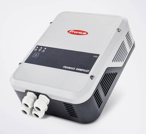 Der Fronius Ohmpilot ist ein Verbrauchsregler, der überschüssigen Solarstrom nutzt, um Warmwasser oder Heizwärme zu bereiten. Beispielsweise kann er einen dreiphasigen Heizstab steuern, der in Trinkwasserspeicher oder Boiler eingebaut wird. Dafür bietet der Regler auch einen Legionellenschutz an. Der Heizstab wird stufenlos bis neun Kilowatt geregelt. Die einphasige Variante des Heizstabs leistet bis zu drei Kilowatt. Weitere Anwendungen sind eine Infrarotheizung oder ein Handtuchtrockner. Wird der Heizstab in einen Heizungspufferspeicher integriert, kann man damit auch die Wärmebereitung aus Gasthermen oder Wärmepumpen unterstützen.