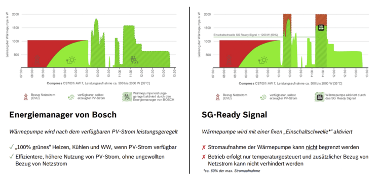 Leistungsunterschied: Mit einem Energiemanager lässt sich die Leistungsaufnahme einer Wärmepumpe an den Überschuss der Photovoltaikanlage anpassen.
