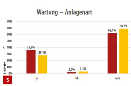 Bei den hydraulisch komplexeren Anlagen zur Heizungsunterstützung und Warmwasserbereitung zeigt sich mit fast 36 % eine höhere Bereitschaft, einen Wartungsvertrag abzuschließen, gegenüber nur 28 % bei den Anlagen zur Warmwasserbereitung.