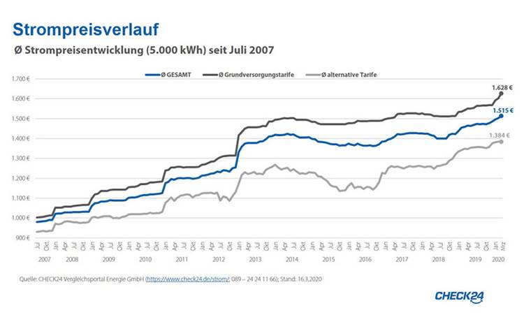 Strom- und Gaspreise im ersten Quartal 2020 weiter auf Rekordniveau
