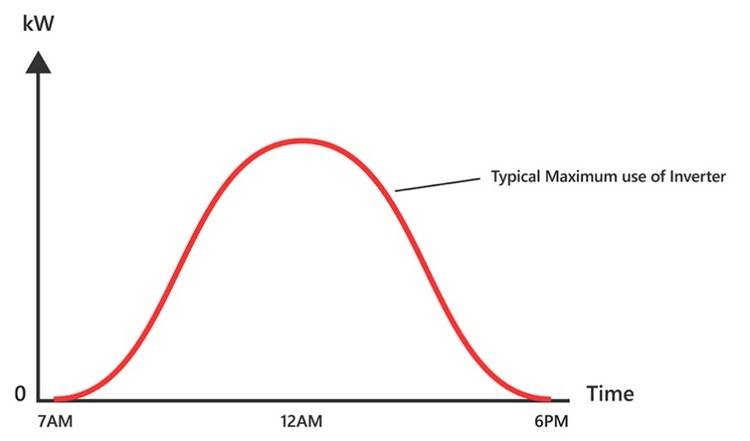 Wäre die Spitzenproduktion der Solarmodule genau auf die Kapazität des Wechselrichters abgestimmt, würde dieser nur bei Idealbedingungen sein volles Potenzial entfalten – wertvoller Photovoltaik-Strom würde verloren gehen. Eine Überdimensionierung setzt die Spitzenlast eines Systems höher an, so kann das System mehr Gleichstrom erzeugen (Abb. 1).