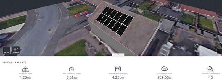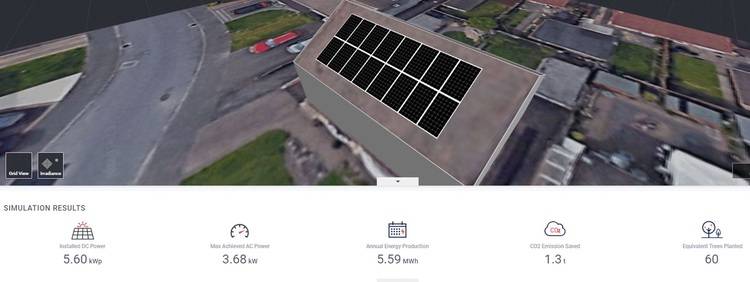 Abbildung 3: 16 installierte Module: 16 x 350 W = ein 5,6-kWp-System. Mit demselben G98-konformen 3,68-kW-Wechselrichter wird das System um 52 Prozent überdimensioniert. Die geschätzte Jahresproduktion beträgt 5590 kWh.