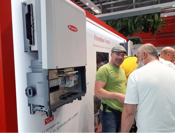 In München präsentierte Fronius aus Österreich ein neues Motto: Meet the Solutions. Außerdem setzte das Familienunternehmen ein sichtbares Zeichen für Produktion, Qualität und Sicherheit aus Europa.