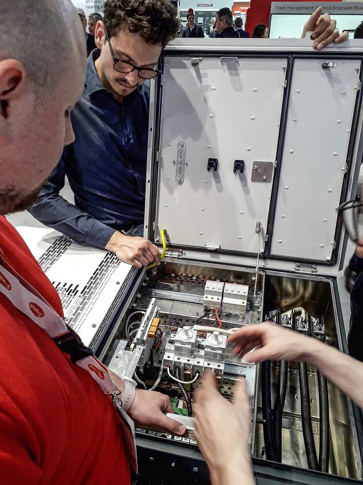 Im Segment der Utility-Kunden spielen die Speicher zur Stützung der Netze eine wachsende Rolle. Das war in München zu sehen: Fast alle Anbieter von Wechselrichtern sind mittlerweile in der Lage, auch größere Batterien einzubinden – bis hin zu einigen Megawattstunden. Modulare Speichersysteme werden durch kaskadierbare Wechselrichter angesteuert, so dass die Systemtechnik mit ihren Aufgaben wachsen kann.