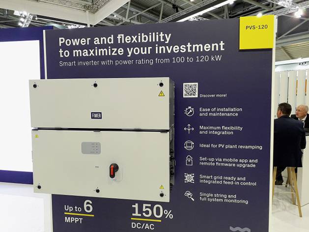 Für Gewerbekunden stellte Fimer die neuen PVS-10/33 vor, für Anwendungen von zehn bis 44 Kilowatt. Der neue PVS-100/120-TL eignet sich für Solardächer und Freilandanlagen gleichermaßen. Der Wechselrichter leistet bis 120 Kilowatt, bietet sechs MPP-Tracker und maximiert die Energieausbeute auch bei Verschattungen.