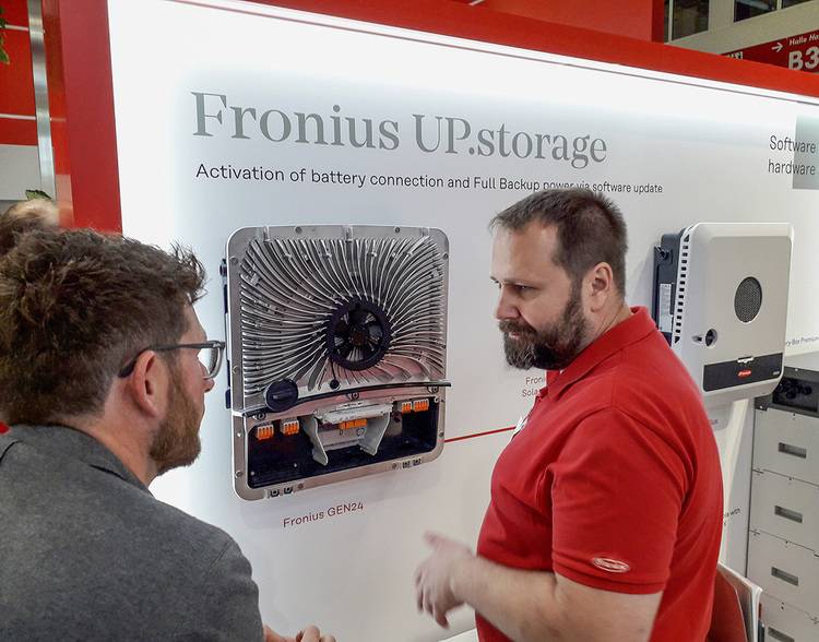 Im Mittelpunkt der Neuheiten bei den Wechselrichtern standen der Hybridwechselrichter Gen24 Plus und der Tauro, der speziell für Gewerbeanlagen konzipiert wurde. Sein doppelwandiges Gehäuse sowie die aktive Kühlung ermöglichen volle Leistung und maximale Erträge auch bei hohen Außentemperaturen. Zudem lässt er sich schnell installieren und warten. Martin Hackl, Chef der Solarsparte von Fronius, stellte im CEO-Talk gegenüber photovoltaik in Aussicht, dass die Österreicher ihre Fertigung in Sattledt und in Tschechien weiter ausbauen wollen.