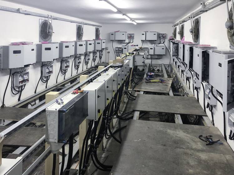 Die DC-Hauptkabel des Modulgenerators führen zentral zur Wechselrichterstation. Der einzig verfügbare Wechselrichtertyp, der mit der ursprünglichen Leistung und der Spannungsebene der Module kompatibel war, verfügte allerdings nicht über einen zentralen DC-Eingang, sondern nur über mehrere Strangeingänge.